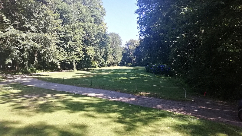 Quelques trous dans les bois, le reste dans un pré; 4 parties séparées d’une route dangereuse à longer et à traverser. Une seule originalité : un bunker au centre d’un green !!